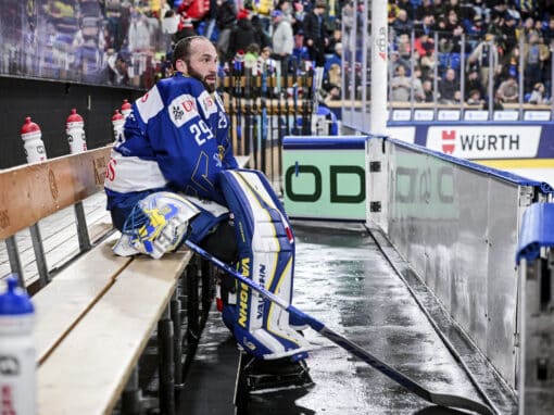 Der Davoser Goali Sandro Aeschlimann, hier im Foto während einer Pause, sicherte seinen Davosern heute dank seinen Shutout gegen IFK Helsinki den Halbfinaleinzug. In der Nachmittagspartie verlor das Team Canada gegen Sparta Prag. Während Davos Pause machte, gab es...