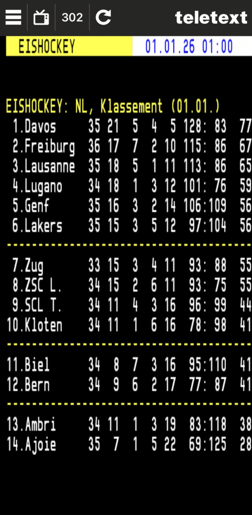 Im Sinne der heutigen Tabelle wird das der HC Davos sein. Meister würde also der Wintermeister. Zieht man allerdings die Partie zwischen dem SCB und dem HCD vom 19. Dezember und den entsprechen Spielbericht dazu zu Rate (Erwacht der Bär bis Ende Saison? – Eishockey-Online Schweiz) und geht man davon aus, dass der Bär bis Ende Saison doch noch erwacht. Dann, ja dann ist einiges möglich. Der Berner Coach Heinz Ehlers fasste es am Abend des 19. Dezember 2025 folgendermassen zusammen: „Die ersten 40 Minuten waren enttäuschend, die letzten 20 Minuten waren gut.“ Wenn der Bär also keine zu langen enttäuschenden Phasen einbaut, dann, ja dann…